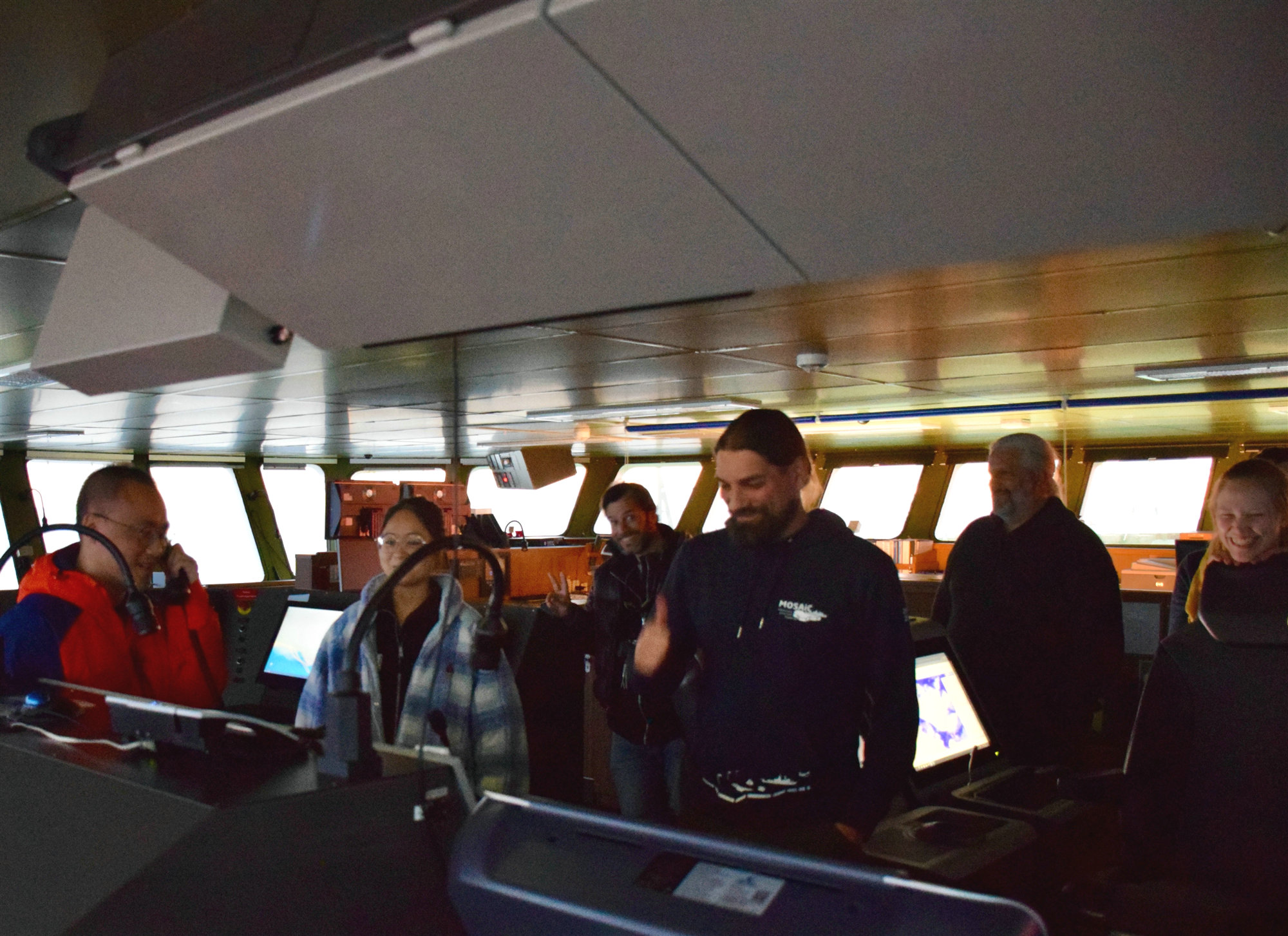 黄璜用中文向雪龙2号发送新年祝福(摄影:Marcus Gutjahr)