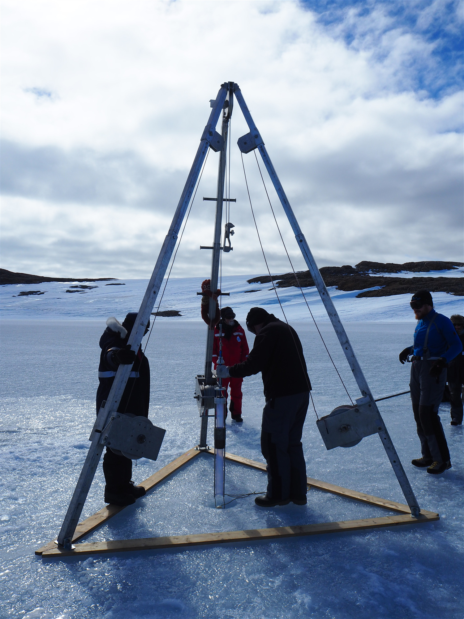 黄璜在德国学习期间曾两次参与南极科考任务并完成了南极威德尔海源区AABW钕同位素演化特征分析,积累了丰富野外工作和研究经验。本阶段任务中,黄璜和夏谨琪完成了达恩利角区域不同水深海水、水柱下方沉积物孔隙水、南极陆地湖泊水以及南极冰盖裹挟沉积物等大量珍贵样品的采集工作,为揭示达恩利角区域AABW钕同位素的演化与调控机制、示踪AABW演化过程以及研究东南极冰盖与AABW相互作用机制等奠定了坚实的基础。