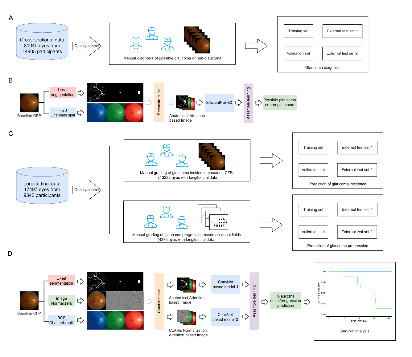 该研究主要分为两个部分:青光眼发病预测和进展预测。