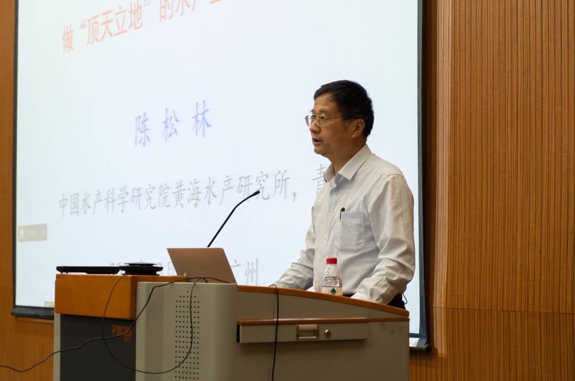 10月15日上午,陈松林院士作为逸仙生命讲坛第二十三讲的主讲嘉宾,作了题为《做顶天立地的水产生物技术研究》的学术报告。此次论坛由黄军就副院长(主持工作)主持,线上线下近200名师生聆听了陈院士的精彩报告。报告主要围绕鱼类养殖中存在的主要问题、团队研究的理论突破以及今后的研究方向三个方面展开,深入细致地阐述了何为“顶天立地”的水产生物技术研究。同时指出水产生物技术研究的努力方向是要加强育种基础理论研究以及鱼类分子育种技术的原创性研究,同时加大科技成果推广和产业化应用,切实解决产业中存在的重大问题,推动绿色高质量发展。陈院士的报告在与会人员中引起了热烈反响,师生踊跃提问,围绕鱼类基因编辑、基因敲除以及基因外泄等问题与陈院士进行了深入交流。