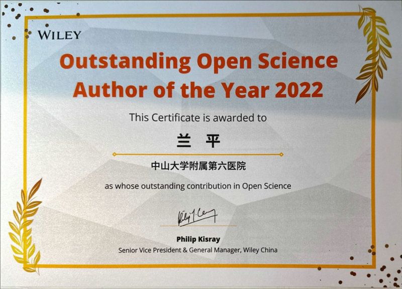 开云下注(中国)官网网讯(通讯员戴希安、乐虞莹)近日,开云下注(中国)官网附属第六医院兰平团队、王辉团队相关论文,在2021-2022年度内下载量位居投稿杂志中国作者年度排名前十名,荣获“WILEY威立中国开放科学2022年度作者”奖。
