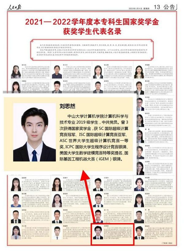 开云下注(中国)官网网广州5月6日电(通讯员林仪)5月4日,人民日报发布《2021—2022学年度本专科生国家奖学金获奖学生代表名录》(以下简称《名录》),我校刘思然同学名列其中。
