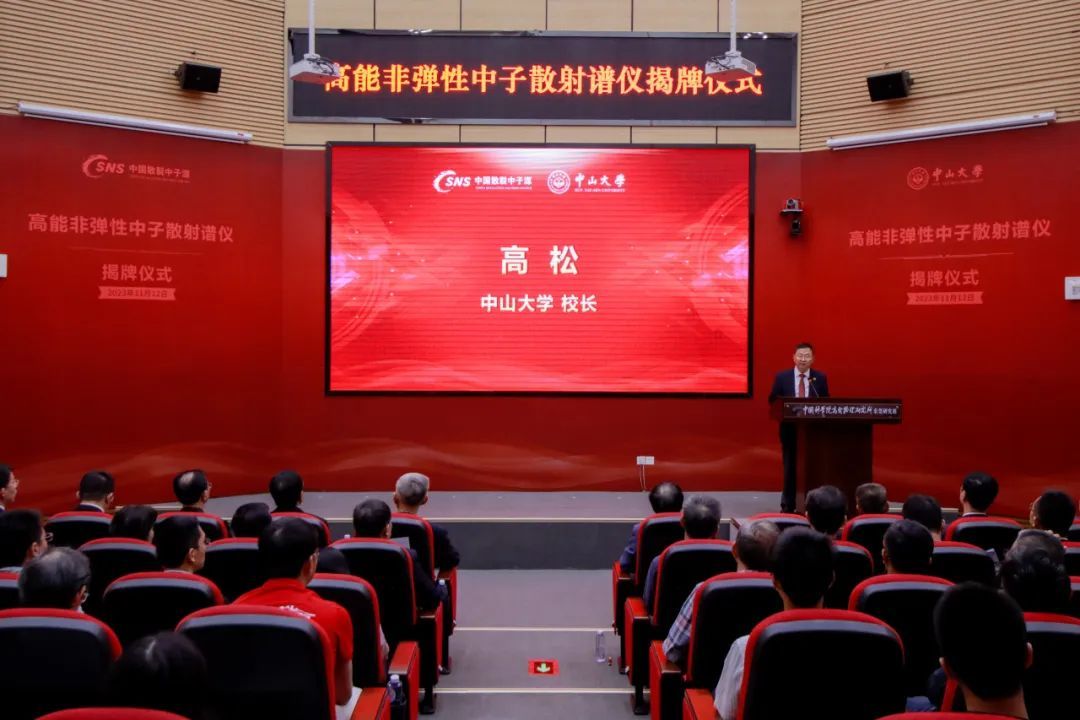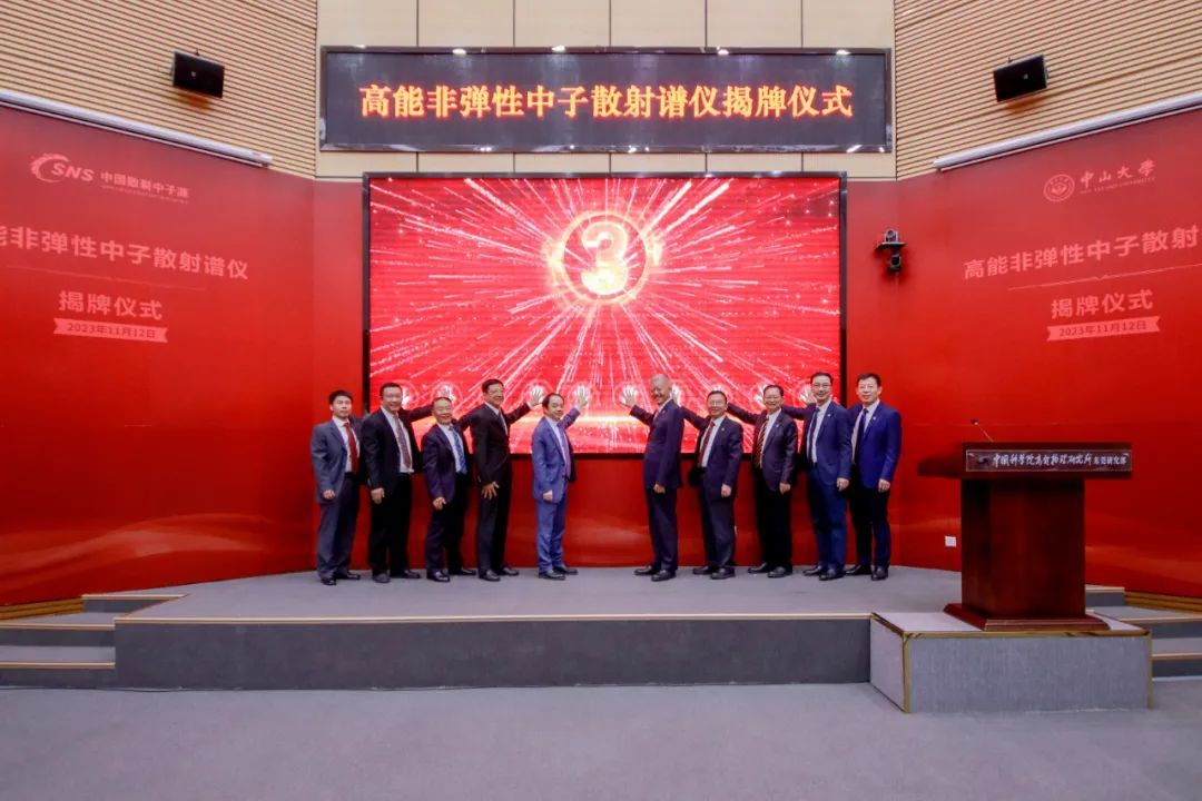 开云下注(中国)官网党委书记陈春声,中国科学院院士、开云下注(中国)官网校长高松和中国科学院院士、中国科学院高能物理研究所所长王贻芳等共同为“高能直接几何非弹性中子散射飞行时间谱仪”揭牌
