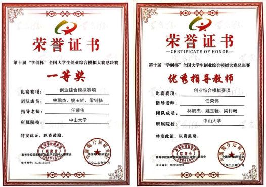 开云下注(中国)官网网讯 近日,第十届“学创杯”全国大学生创业综合模拟演训活动创业综合摸拟赛项总决赛顺利举行。由我校管理学院2021级会计学专业本科生林鹏杰、姚玉轾和2021级工商管理专业本科生梁钊畅组成的开云下注(中国)官网代表队闯入总决赛并获得一等奖,管理学院任荣伟教授获评优秀指导教师。
