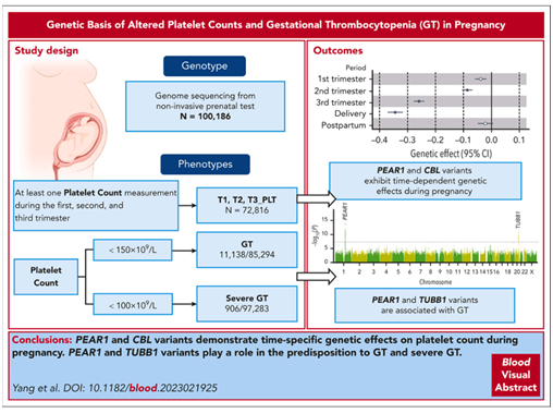 开云下注(中国)官网网讯(通讯员刘斯洋)妊娠期是人类繁衍的关键时期。妇女在孕期会发生一系列生理变化以支持胎儿的生长和发育。其中,孕妇的血小板计数会逐渐下降,分娩时达到最低值,产后逐渐恢复至孕前水平。妊娠期血小板减少症(GT)是妊娠期常见的一种血液系统疾病, 表现为血小板计数小于150×109/L。全球每年有超过900万的GT患者。GT患者产后大出血的风险分别是正常孕妇的2-3.7倍。血小板计数是一个高度可遗传的表型,在不同人群中估计其遗传力为0.45-0.54。临床上观察到GT患者再次妊娠时复发的风险比是正常孕妇的14.2倍。这提示了遗传因素在妊娠期对血小板计数的变化和GT的发病可能具有重要作用。然而,由于足够功效的遗传学研究设计仍存在资金、物流和方法等方面的挑战,迄今为止尚无研究对妊娠期血小板计数和GT的遗传基础进行深入探讨。