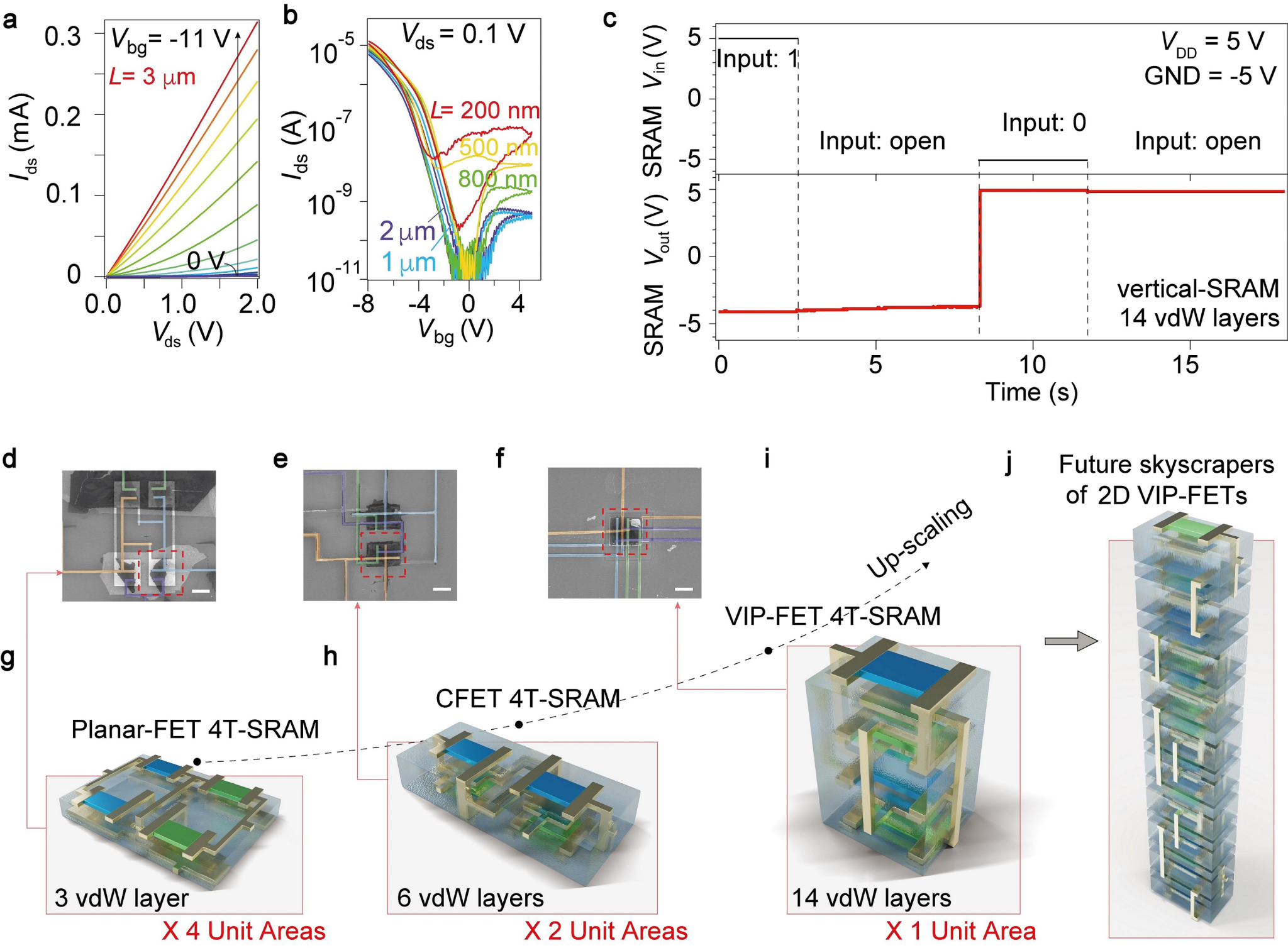 二维半导体垂直3D集成互补型逻辑电路SRAM原型器件的实现