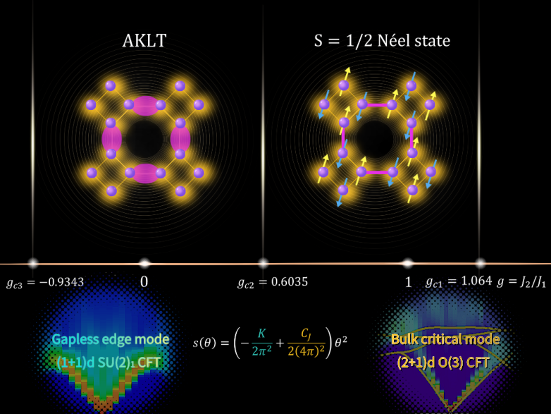 其中的K项由无能隙的边缘态提供,而CJ项由体的O(3)临界模贡献。数值结果很好地验证了猜想的可靠性,从数值角度直观揭示了边缘模与体的临界涨落耦合的物理图像。