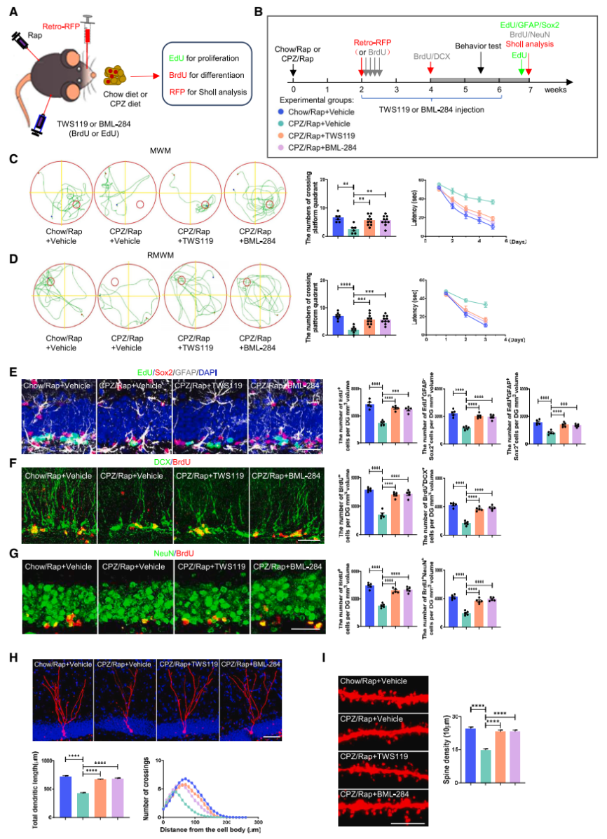 图6 调控GSK3β/β-catenin信号通路对CPZ/Rap小鼠海马神经发生、新生神经元的发育和认知功能的影响