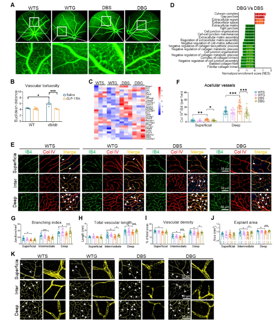 图2. GLP-1 RAs改善糖尿病视网膜血管卷曲度和紧密连接