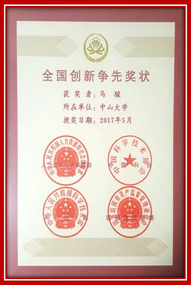 团队带头人马骏教授2017年“全国创新争先奖状”