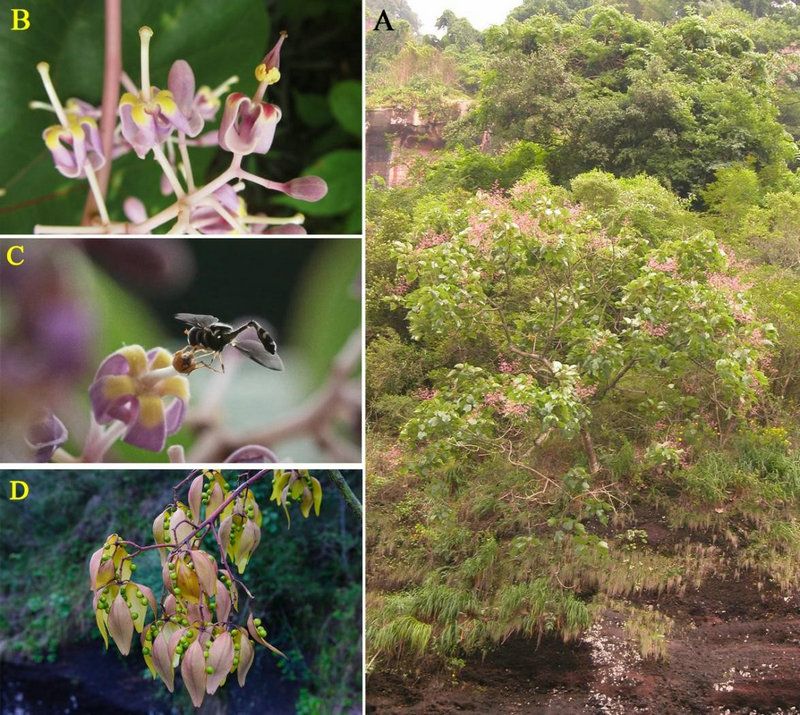近日,该研究以“The origin and dispersal of Firmiana danxiaensis among isolated specific landscapes”为题在学术期刊Journal of Systematics and Evolution上在线发表。开云下注(中国)官网是本文的第一作者单位,开云下注(中国)官网生命科学学院凡强副教授及开云下注(中国)官网地球科学与工程学院黄康有副教授为论文共同通讯作者。该研究工作是在周婷副教授主持的“国家公园建设专项”(丹霞山生物多样性科考专项)资助下完成的,广东丹霞山国家级自然保护区、韶关学院、广东石门台国家级自然保护区也参与了本项研究。