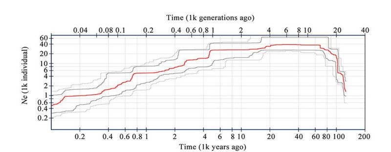 图3 基于RAD-seq数据对过去20万年以来丹霞梧桐有效群体大小变化的推断