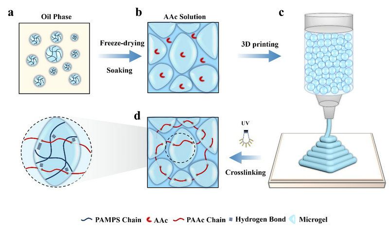 图1 基于微凝胶增强双网络水凝胶的3D打印微结构