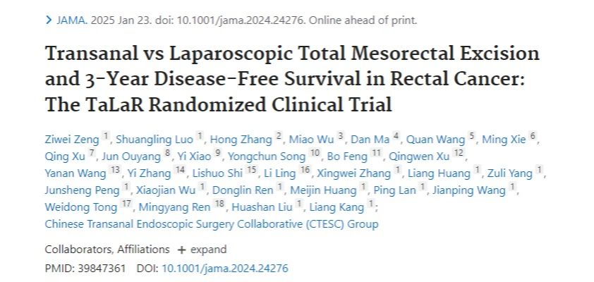 汪建平、康亮团队提供全球首个关于“经肛腔镜直肠癌根治手术”的高级别证据