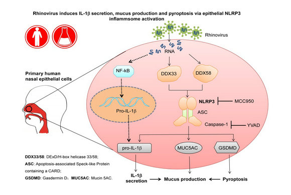 生命科学学院崔隽教授课题组和附属第一医院李春炜教授课题组合作揭示NLRP3炎症小体在鼻病毒诱导气道黏膜重塑中的功能和机制