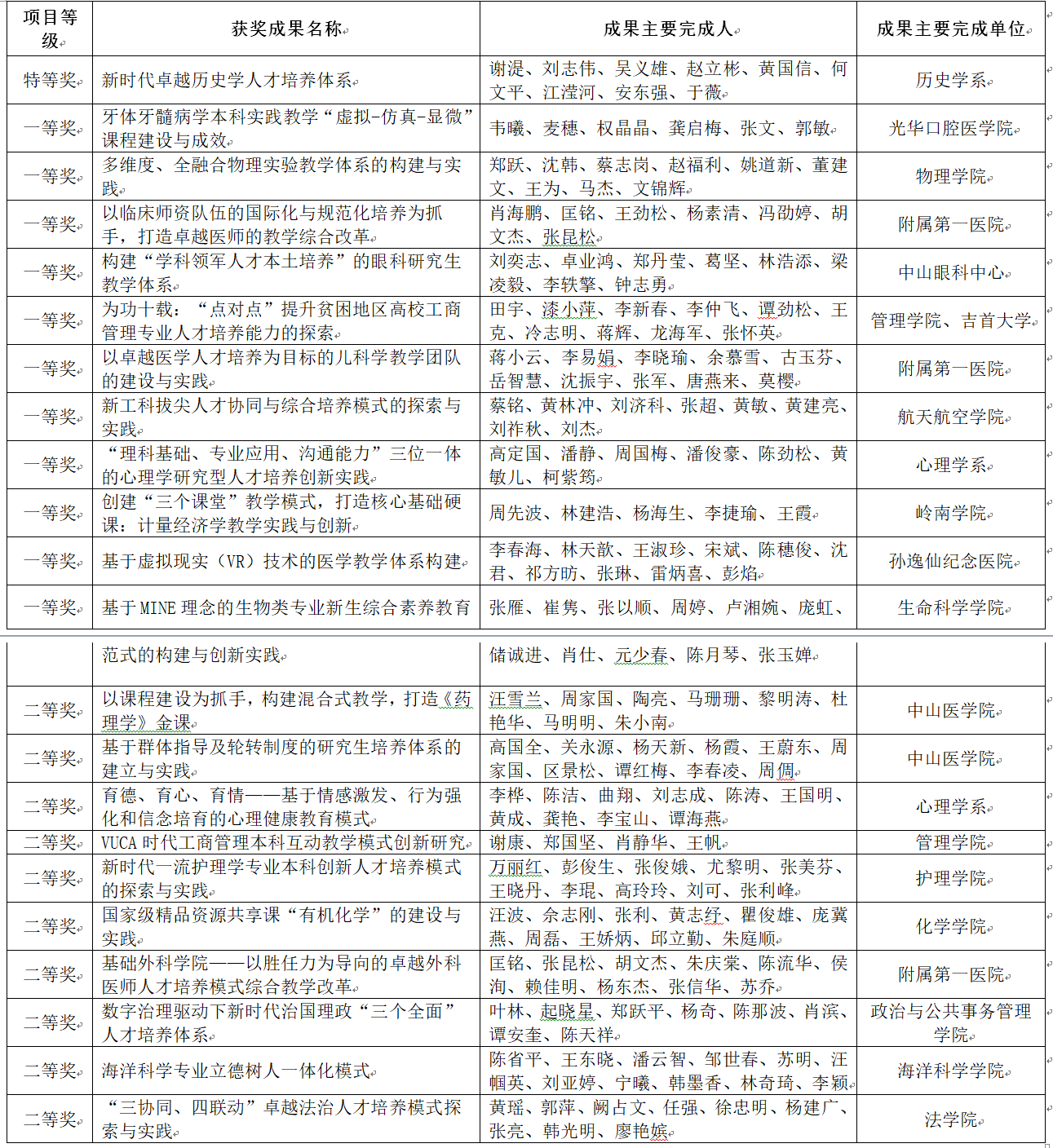 日前,广东省教育厅公布了2019年广东省教育教学成果奖获奖项目名单。在全部授奖项目中,高等教育类共225项,其中特等奖5项、一等奖100项、二等奖120项。我校共有22个项目获奖,其中特等奖1项、一等奖11项、二等奖10项,涵盖文理医工17个教学单位。