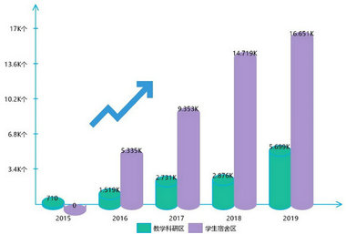 近五年校园互联网出口带宽发展统计