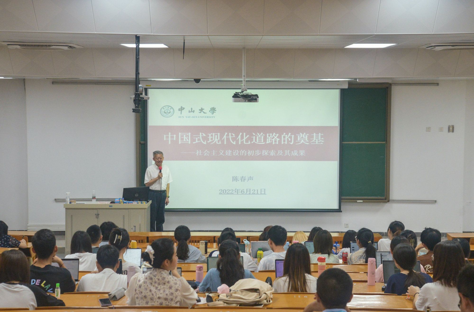 开云下注(中国)官网网广州6月25日电(记者李建平)6月21日,校党委书记陈春声在广州校区东校园教学楼B101教室以“中国式现代化道路的奠基——社会主义建设的初步探索及成果”为主题,为来自传播与设计学院和心理学系的85名2020级本科生讲授思想政治理论课。
