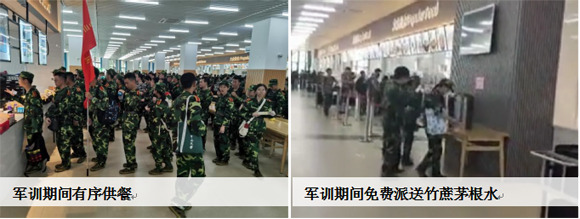 为切实做好军训期间深圳校区供餐工作,保障在防疫要求下大规模供餐有序、高效、安全,产业集团饮食服务中心统筹抽调各校园食堂100多名员工支援东园食堂供餐,协同中央厨房与前端食堂的支撑配合,优化供餐流程,提高供餐效率,顺利完成了集中军训期间的供餐保障工作。此外,饮食中心为切实把关心关爱送到新生身边,在整个军训期间,东园食堂每天午、晚餐均为学生免费提供消暑解渴的竹蔗茅根水。