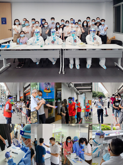 核酸检测现场随处可见党员志愿者身影(来源:产业集团)