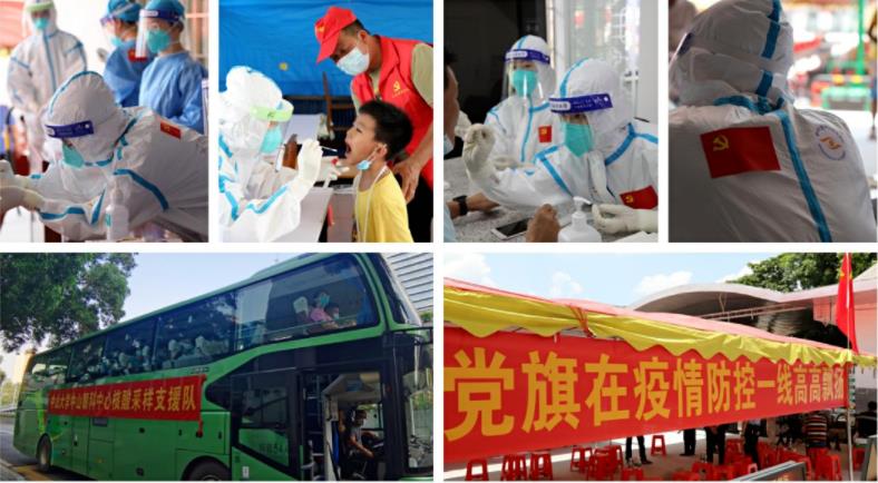 为广州疫情防控办实事。面对今年广州本土疫情,中心党委靠前指挥、科学防控,各临床党支部全面动员、迅速响应,奋战在抗疫一线的党员们,无惧风雨、不舍昼夜,他们以实际行动践行“我为群众办实事”。截至6月21日,中心先后派出支援广州等地大规模核酸采样医护及综合协调志愿者600多人次,其中,党员占比近50%,临床党支部100%选派党员参加核酸采样志愿者队伍,让党旗在疫情防控一线高高飘扬。