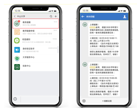 本学期开学以来,为更好服务于教师们的日常教学工作,教务部在学校企业微信端开设了“教务提醒”专栏,将本科教务系统上各开课院系录入的排课信息整合推送至个人企业微信,实现了教师手机移动端的每日上课提醒。该功能还实时结合开课单位排课情况与教师调停课申请审批情况,自动更新提醒消息的上课时间、上课地点等信息。功能上线后得到广大教师的好评。
