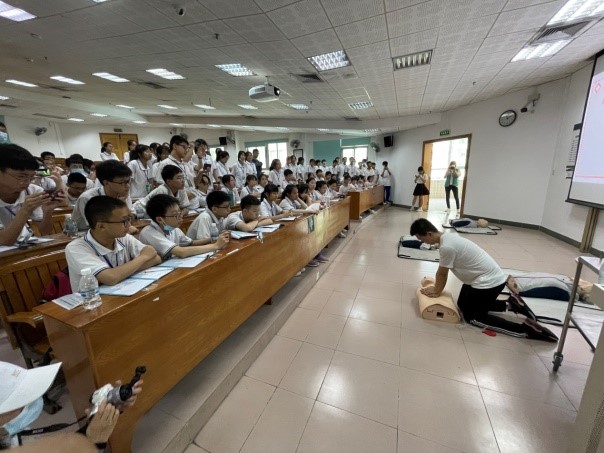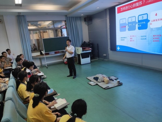 4月,学院应急救护科普团队为佛山南海石门中学师生开展急救科普讲座(来源:中山医学院)