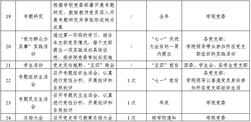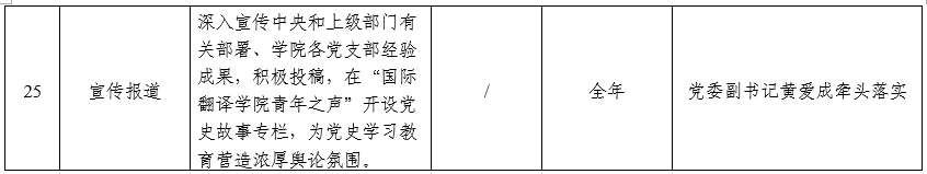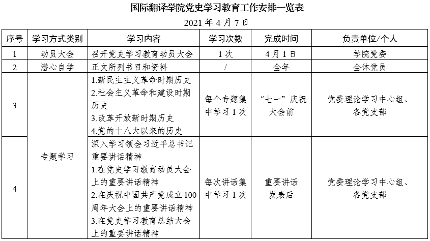 国际翻译学院党史学习教育工作安排一览表(来源:国际翻译学院)