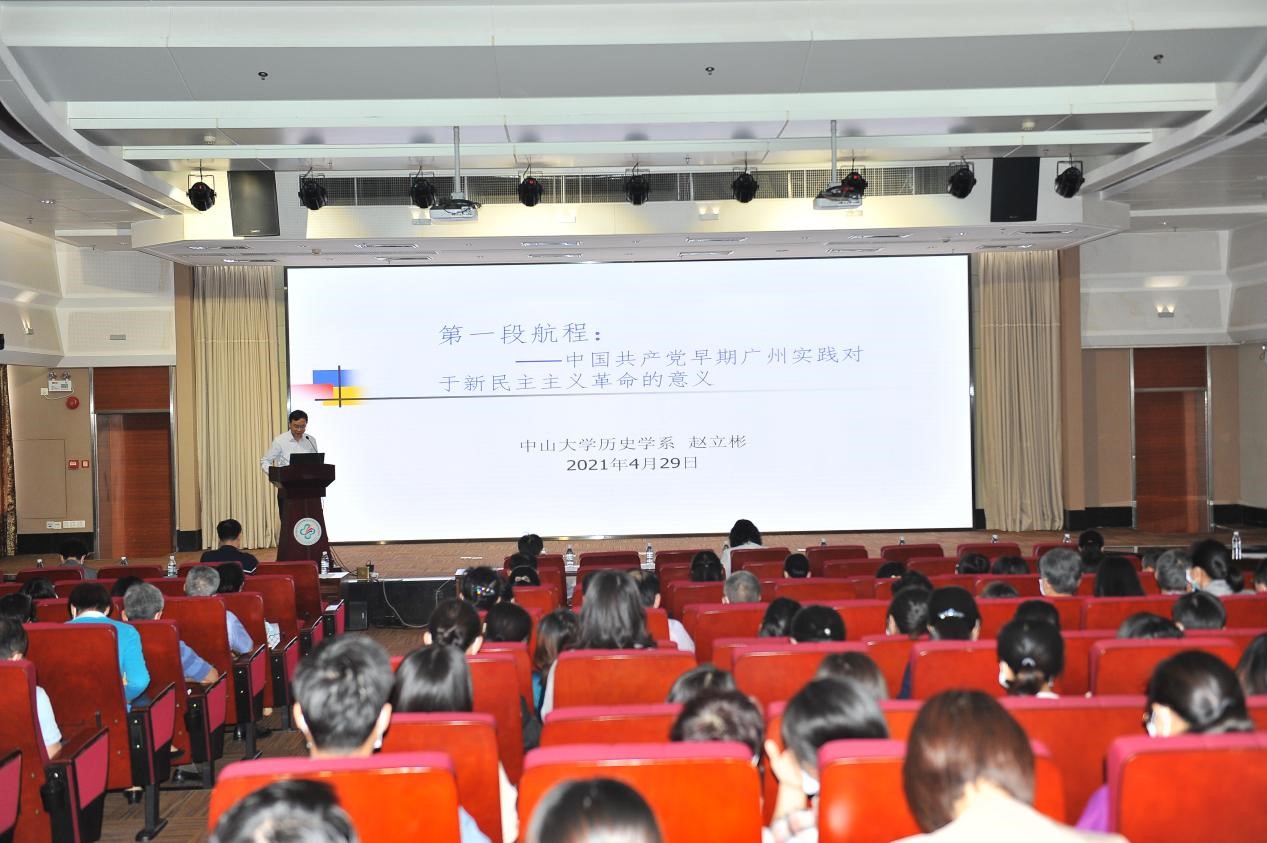 报告会邀请中国孙中山研究会副会长、历史学系赵立彬教授专题讲授了《第一段航程:中国共产党早期广州实践对于新民主主义革命的意义》。
