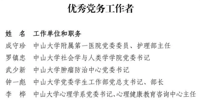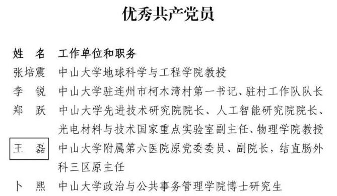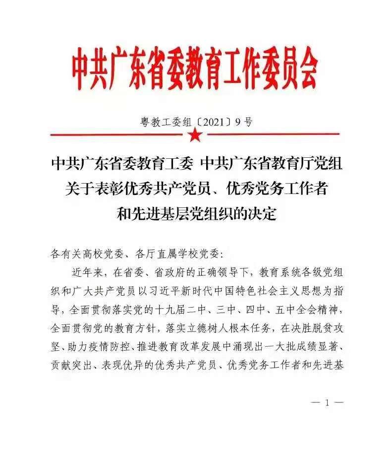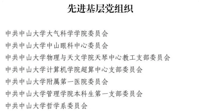 据了解,为庆祝中国共产党成立100周年,中共广东省委教育工委、中共广东省教育厅党组表彰了一批优秀共产党员、优秀党务工作者和先进基层党组织。其中,我校党委有5人被授予“优秀共产党员”称号,分别是张培震、李锐、郑跃、王磊和卜熙;5人被授予“优秀党务工作者”称号,分别是成守珍、罗镇忠、武少新、钟一彪和李桦;7个党组织被授予“先进基层党组织”称号,分别是中共开云下注(中国)官网大气科学学院委员会、中共开云下注(中国)官网眼科中心委员会、中共开云下注(中国)官网物理与天文学院天琴中心教工支部委员会、中共开云下注(中国)官网计算机学院超算中心支部委员会、中共开云下注(中国)官网附属第一医院委员会、中共开云下注(中国)官网管理学院本科生第一支部委员会和中共开云下注(中国)官网哲学系委员会。