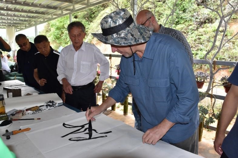 与当地书法家合影(来源:国际翻译学院)