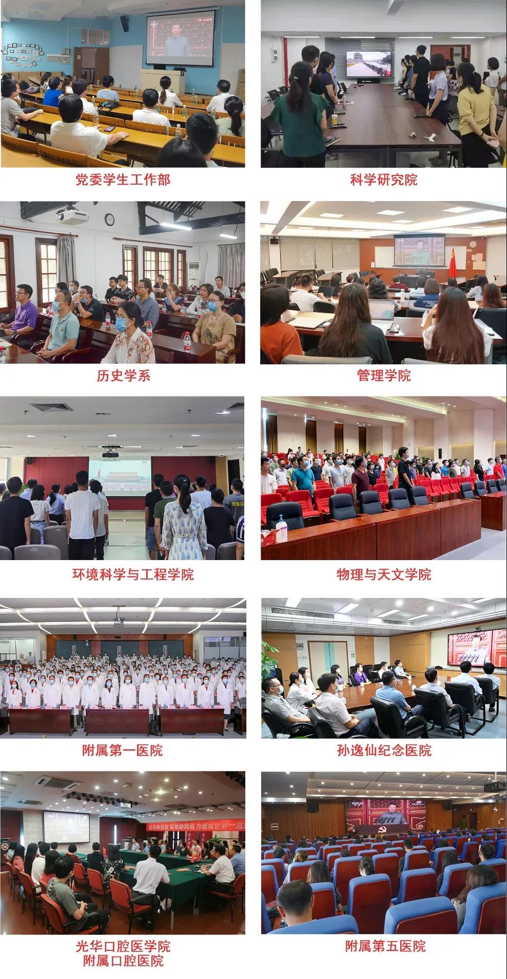 因疫情防控需要,除主会场、分会场外,各二级党组织、各附属医院和产业集团也及时组织师生在直播平台观看庆祝大会。