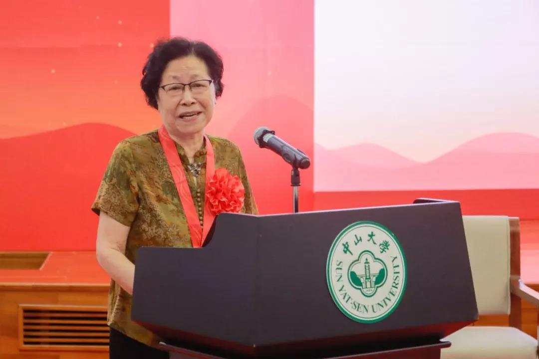 离休老党员佟树珀代表纪念章获得者上台发言。她满怀深情地说:“这枚沉甸甸的纪念章,充分体现了党中央对老党员的关爱和褒扬,是对我们老同志的一种激励。今天蒸蒸日上、日益强盛的中国,是无数共产党人用鲜血和生命换来的,我们将永远铭记他们!”她表示,亲历了新中国成立以来的历史,她切身感受到了在党的领导下国家的飞速发展和社会的巨大进步。在习近平新时代中国特色社会主义思想指导下,祖国一日千里,捷报频传,屡创奇迹。在新时代背景下,学校的事业也进入了发展快车道,喜讯不断。她期待青年一代在新征程上能坚定理想信念,勇于担当作为,传承中大红色基因,为祖国的繁荣富强、为学校事业的发展贡献青春力量。