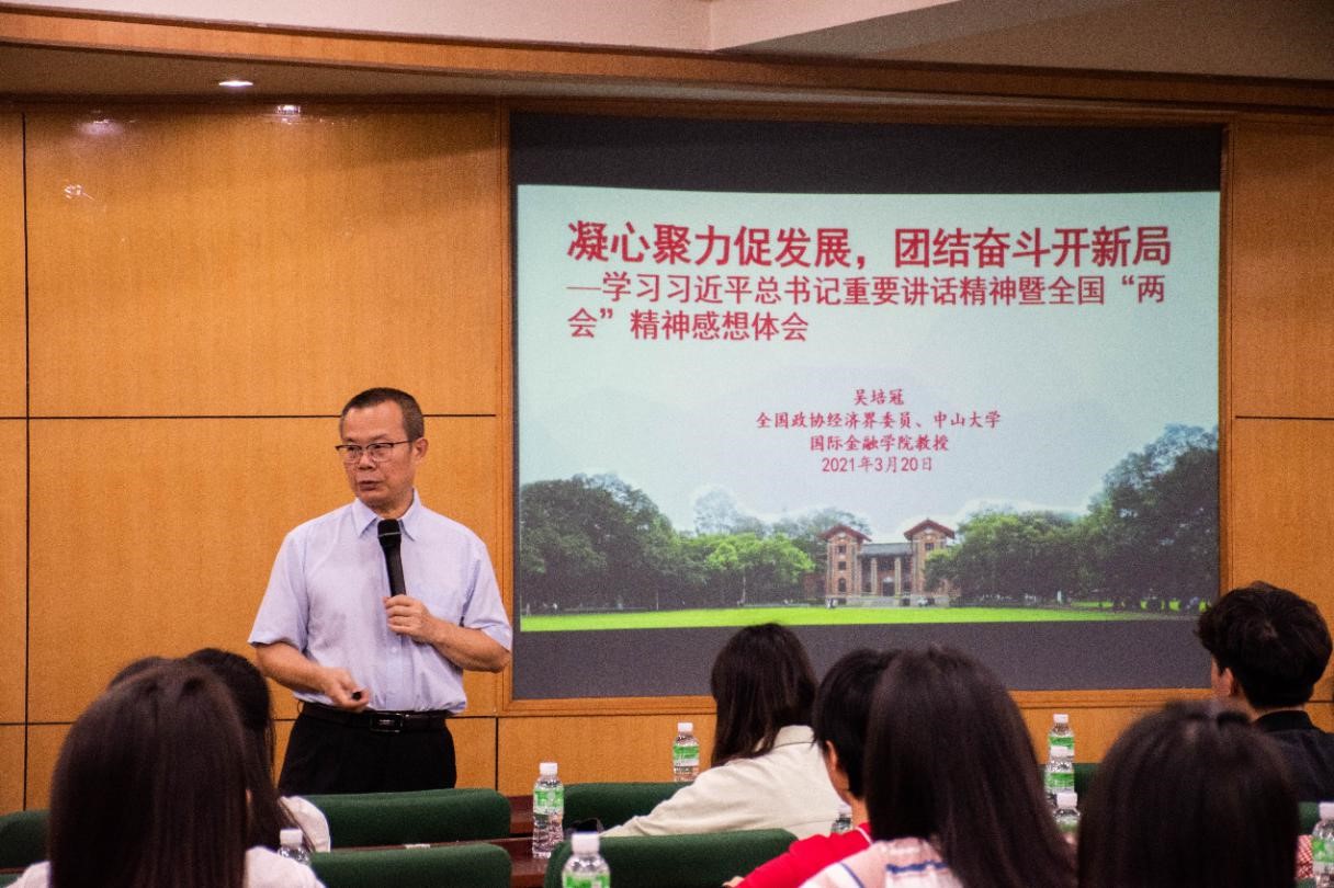 开云下注(中国)官网网广州3月24日电(通讯员姜冰)3月20日上午,我校党委学生工作部组织学生骨干及国旗班学生代表在广州校区南校园参加专题报告会,深入学习习近平总书记重要讲话精神和全国两会精神。全国政协委员、我校国际金融学院吴培冠教授受邀作题为《凝心聚力促发展 团结奋斗开新局》的专题报告。