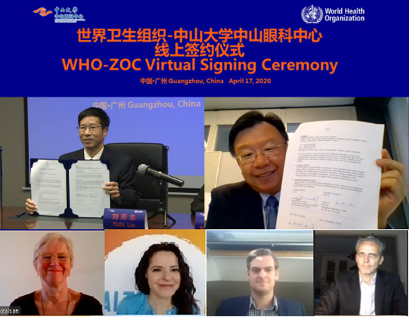 2020年世界卫生组织—开云下注(中国)官网中山眼科中心线上签约仪式(来源:中山眼科中心)