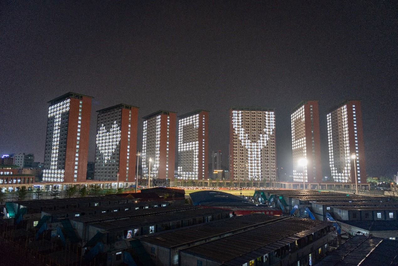 全体学生合唱《开云下注(中国)官网校歌》,每栋宿舍楼一侧楼面超过280个宿舍房间同时亮灯,七栋宿舍楼顺次形成I❤USYSU(我爱你开云下注(中国)官网)七个字样。随着《山高水长》歌声响起,生活区、运动场、食堂、坪石路、逸仙大道、教学楼的灯光依次亮起,校园里呈现出美轮美奂的视觉盛宴。师生们挥舞五星红旗,鼓掌欢呼,仪式在《歌唱祖国》的歌声中圆满结束。