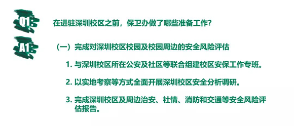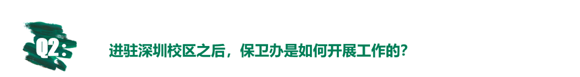 在进驻深圳校区前,保卫办未雨绸缪,做好充分准备工作。进驻深圳校区后,保卫办及时排查,解决校区安全盲点,为学校师生进驻保驾护航。为让大家更深入地了解深圳校区安保工作情况,我们准备了这份深圳校区“安全保卫Q&A”。