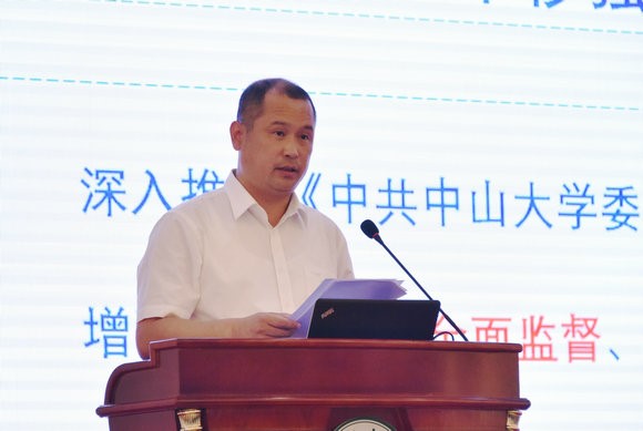 林东伟副书记、纪委书记作《充分发挥纪委专责监督作用 为学校事业行稳致远提供坚强监督保障》的党风廉政建设专题报告。他通报了2019年10月以来学校违规违纪案件,以案释德、以案释纪、以案释法,强化警示教育,做深查办案件“后半篇文章”。他分析了学校纪委加强监督工作的思路,提出了具体举措。他指出,学校纪委坚定不移强化政治监督,坚持不懈加强日常监督,持之以恒深化正风肃纪,努力建立完善多校区、多学科、多层次、全覆盖的监督体制机制,为学校事业行稳致远提供坚强监督保障。他希望,全体党员干部、全体教师要自觉接受监督,习惯于在相互提醒和督促中修正错误、共同进步,以饱满的热情、昂扬的斗志、务实的作风,奋力谱写学校事业发展新篇章。