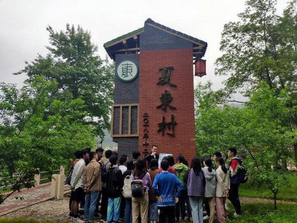 刘立欣在“同心阙”前现场讲解(来源:地理科学与规划学院)