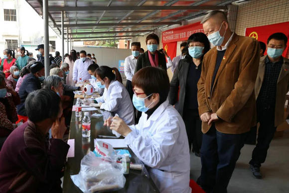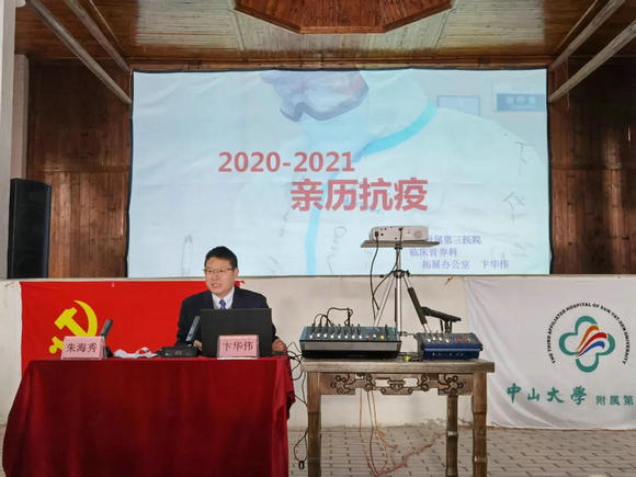调研期间,附属第三医院吴京洪书记带队,组织10余名临床专家在连州市丰阳镇开展义诊活动,覆盖了多种镇村急需的科室类型,共接诊当地百余位村民,免费发放药物数万元。“援鄂英雄”卞华伟医生和朱海秀护士在丰阳人民礼堂面向镇村干部主讲“抗疫精神”专题党课。