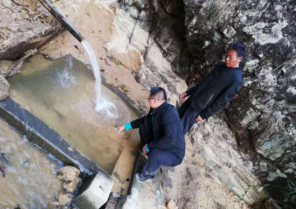 李锐上山查看村民饮用水源情况(来源:校工会)