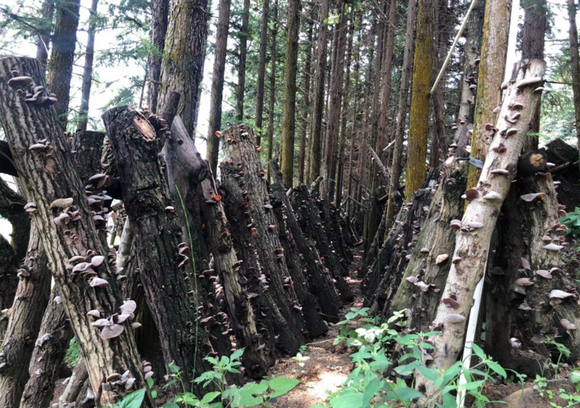 柯木湾村盛产各种各样林木。2020年初,国道两边白杨树因为枯萎,被当地公路局砍伐下来堆在路边。精打细算的李锐看到了商机,他带领村集体合作社低价采购了这些枯木,将他们分成两列,整齐地排在山脚下的林荫小道旁,建成了木耳种植基地。