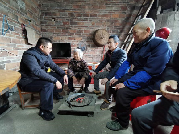 李锐(左一)走访调研贫困户(来源:校工会)