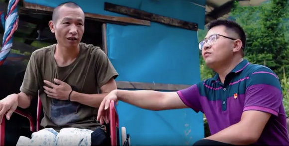 午后炙热的骄阳灼烤着大地,李锐趁着午休,沿着小道爬上了陡峭的泥土山,他放心不下贫困户吴伟军一家。“老吴,你家的鸡养的怎么样了?”李锐拍了拍脚上的泥土说道。贫困户吴伟军推着轮椅,正在自家山地果园里忙活,他养殖的山地鸡,目前规模已经达到500只。