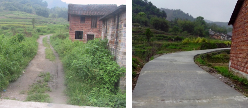 修建前(左图)和修建后(右图)的村路(来源:校工会)