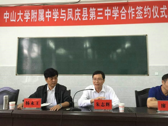 朱志辉在凤庆三中与中大附中合作签约仪式上讲话(来源:校工会)