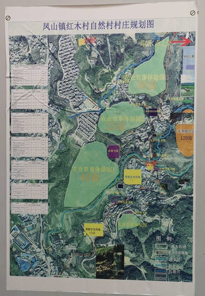 2019年初,红塘村顺利通过第三方检查,进入巩固脱贫成果的过渡期。春节期间,郭兴勇主动放弃春节休假的机会,留在红塘,与回乡探亲的乡贤们一同讨论乡村振兴的思路与规划。哪里需要筑一条路?哪里的地块还没有被利用起来?哪里可以建一个旅游休闲区?面对这些问题,他们一个一个地讨论,希望为红塘村摸索出一条适宜的发展道路。通过这样的例会,他们初步制定了开发方案,绘制出《凤山镇红塘村红木村自然村村庄规划图》。