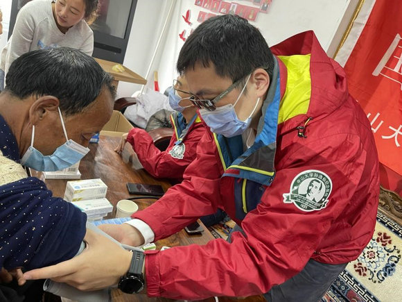 随后,国家医疗队继续奔赴雪瓦卡村。由于交通不便,村庄分布零散,藏民日常就医困难。因此,村委会召集村民到村委会义诊。医疗队发现,该村落藏民的主要健康问题是以消化道疾病、关节炎、眼部疾病为主。肝胆外科孙健教授为多名藏民进行腹部体检,发现当地群众多为胆道结石和胃肠道疾病,孙教授耐心对藏民进行了健康宣教并赠予利胆、消炎、护胃药物。骨科李玉希主治医师为多名骨性关节炎藏民做了专科查体,赠予了消炎止痛和营养软骨的药物,并交代了相关注意事项。一名独居的藏民患有慢性角膜炎,常年出现眼睛疼痛和畏光,眼科宫海军医生检查后予以对症处理药物,并跟村委干部交代了药物具体使用方式,确保治疗到位。在雪瓦卡村,医疗队一共为40多名藏民送医送药。