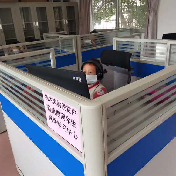 为了做好“停课不停教、停课不停学”工作,全省中小学校在3月2日开展线上教育。对家里无网络、无电视、无设备的“三无”困难学生,驻村扶贫工作队把柯木湾村扶贫电商工作室改造成临时网络课程学习中心,集中为附近无网络的4名贫困学生提供在线网课学习平台。同时,针对家庭位置偏远而无法集中学习的7名贫困学生,驻村工作队购置一批平板电脑设备发放到户,使他们能安心居家、线上学习。