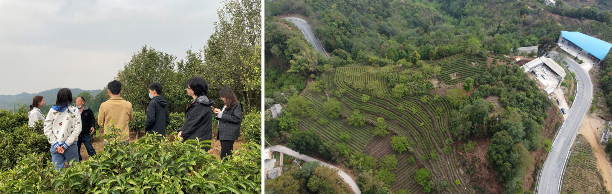 左:与王大哥讨论茶园设计 右:王大哥家茶园鸟瞰图(来源:地理科学与规划学院)